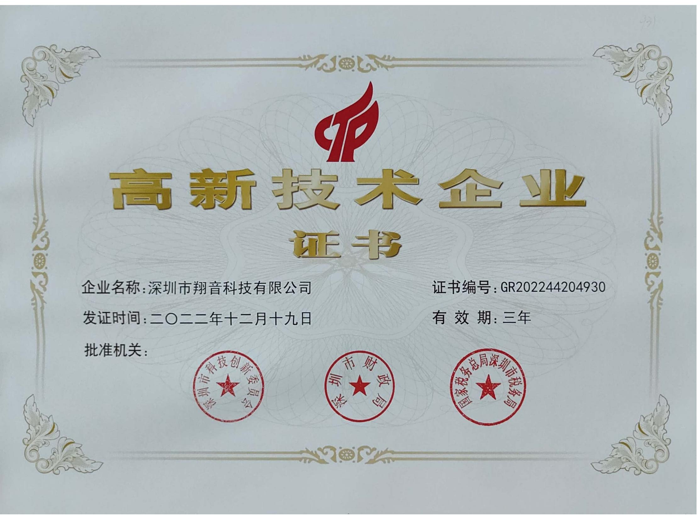 國(guó)家(jiā)高(gāo)新技(jì)術(shπσπù)企業(yè)證書(shū)